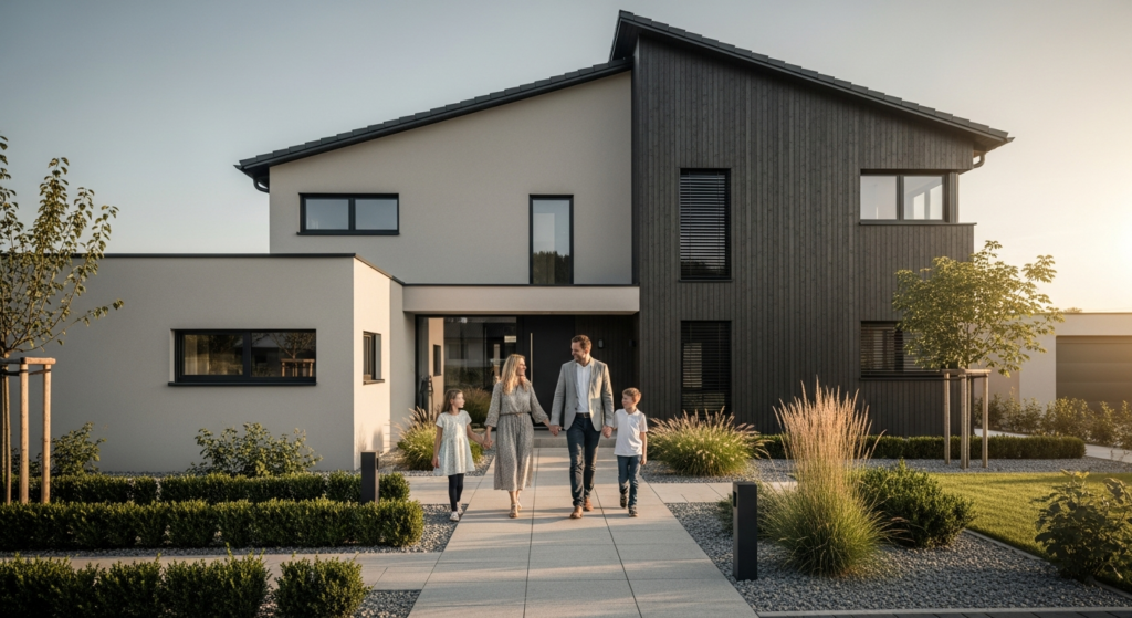 Ein Haus mit Hanglage und Zufahrt unten bietet den Vorteil, dass man direkt in die Wohnräume im oberen Stockwerk gelangt – etwa mit einer schönen Terrasse nach hinten zum Hang. Diese Bauweise wird oft gewählt, wenn der Hang nach hinten ansteigt und das Haus in den Hang „hineinwächst“.
